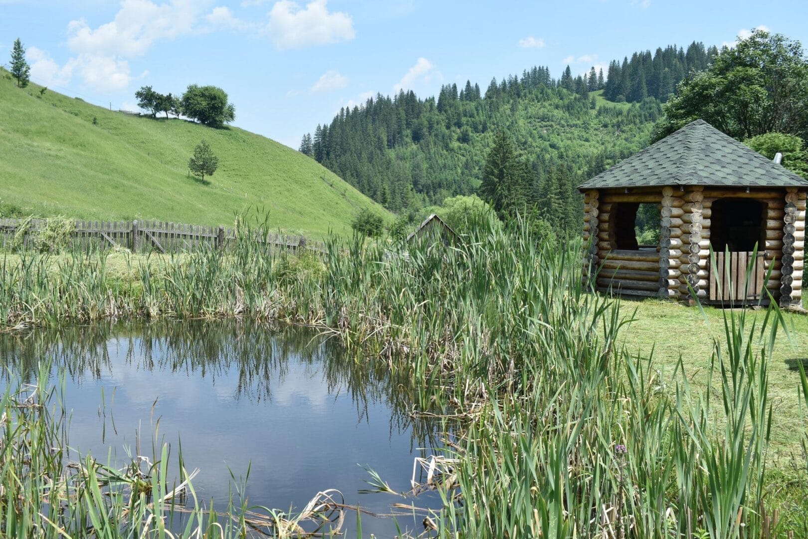 - Поруч ліс та ставок