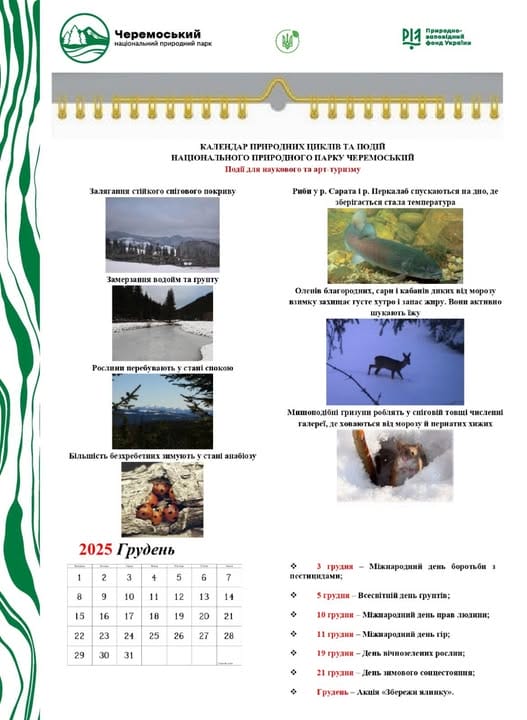 Календар природних циклів та подій НПП «Черемоський» на грудень