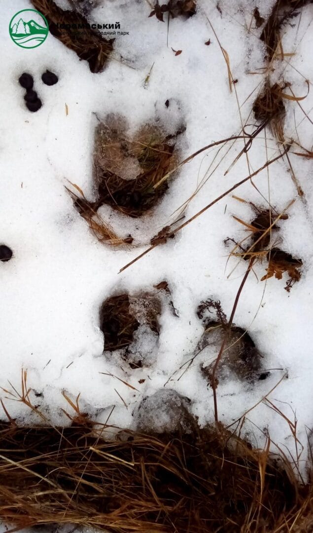 Не менш цікаві знахідки стосувалися й ссавців: у лісі помітні сліди кабана та борсука, а також численні ознаки присутності оленя благородного та козулі. Ці спостереження підтверджують активність популяцій цих видів у холодну пору року.