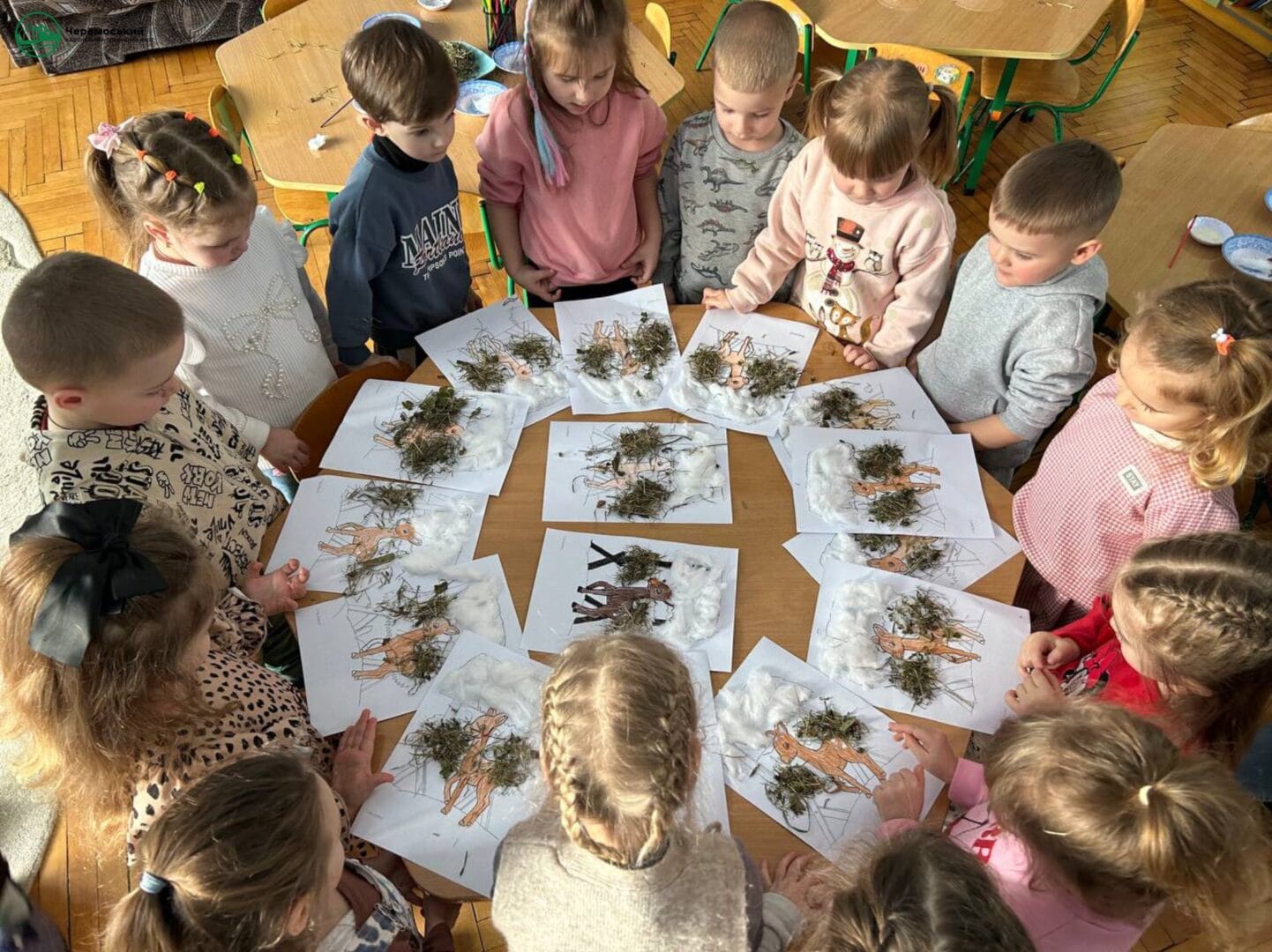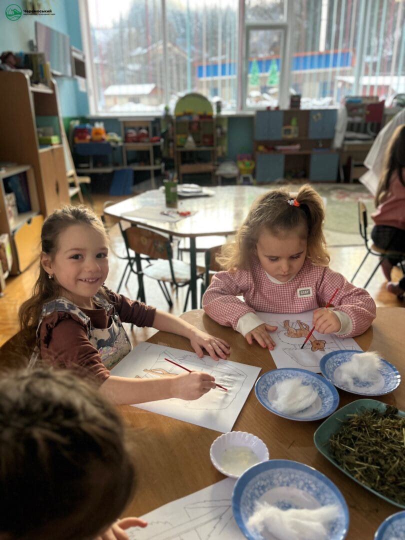 Особливою родзинкою стала творча частина — створення нетрадиційної аплікації «Підгодівля оленятка». Малеча з великою любов’ю «частувала» паперового оленятка сіном і смаколиками, вкладаючи у свою роботу тепло сердець та добрі думки. Через творчість діти вчилися турботі, відповідальності та любові до природи.