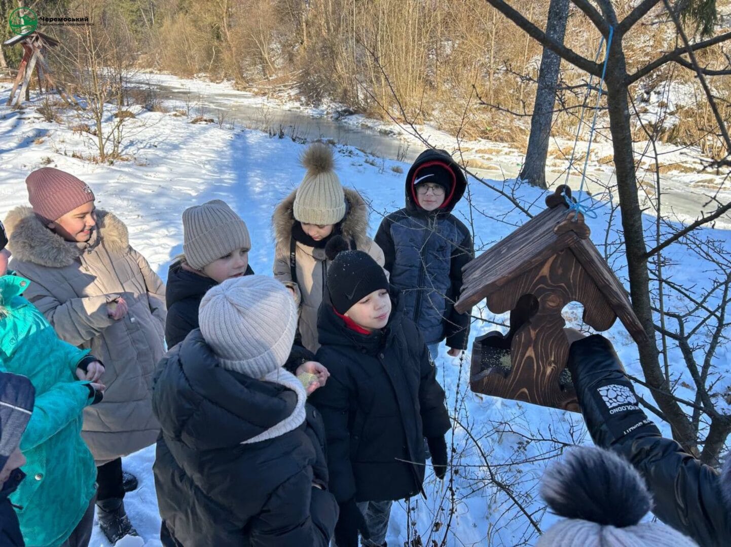 Практичним і важливим елементом екскурсії стало встановлення годівнички для птахів. Учасники обговорили, чим можна підгодовувати пернатих узимку, чому це важливо та як правильно доглядати за годівничками впродовж холодного періоду.